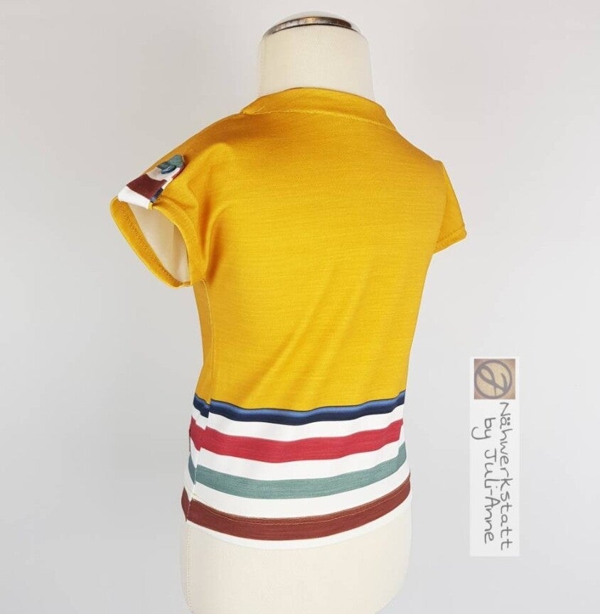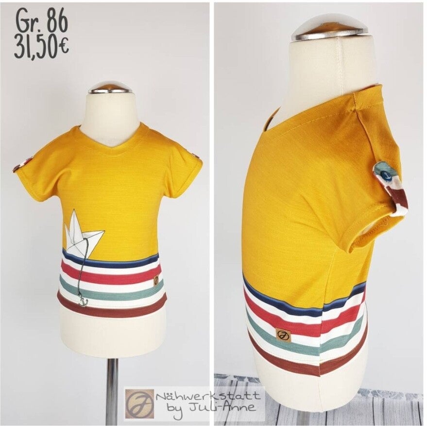 86 V Shirt Maritim Papierboot Senfgelb