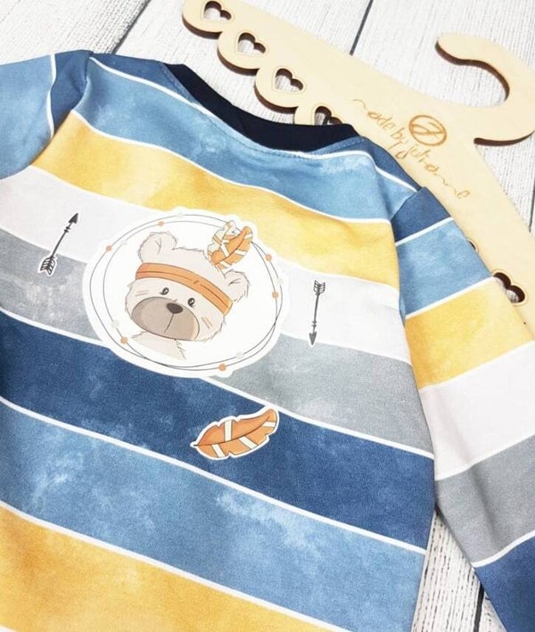 Dieser Cardigan hier ist aus einem. Butterweichen Sommersweat. Am Rücken hat ein toller Plott mit einem Boho - Bären Platz gefunden.