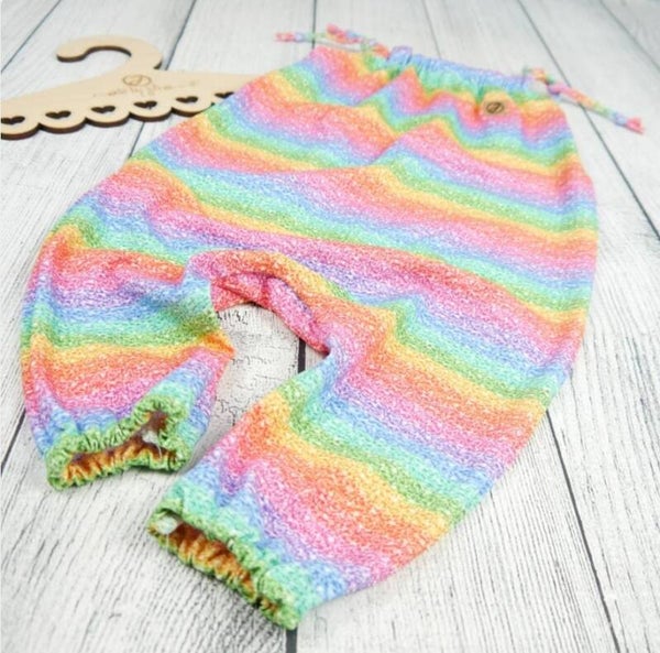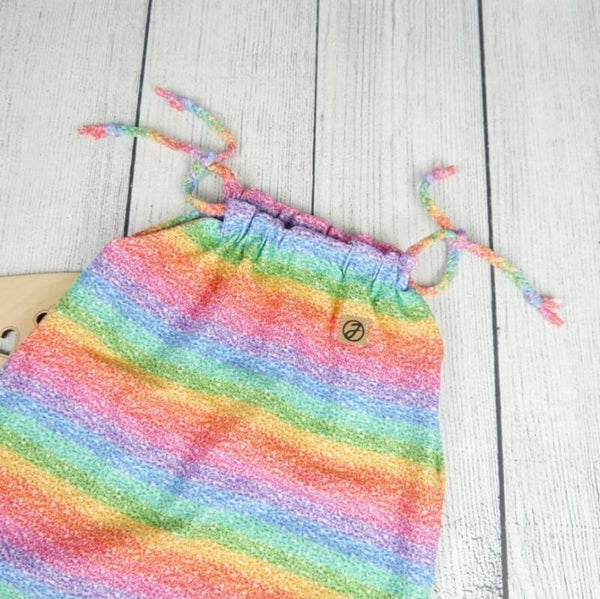 Der Jumper Sara ist eine locker fluffige Sommerhose, die oben mit Trägerchen zugebunden wird – und somit genau ans Kind angepasst werden kann.