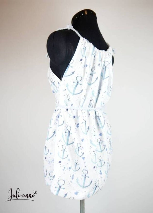 Luftiges und locker sitzendes Hängerchen aus Musselin. Die Träger werden an einer Seite gebunde - Ihr könnt das Hängerchen damit anpassen und den Ausschnitt nach Belieben einstellen. Passend dazu gibt es einen geflochtenen Gürtel aus Jersey. Dieser ist elastisch und besonders angenehm zu tragen. Er rafft das Top vorteilhaft an der Taille, kann aber auch einfach weggelassen werden.