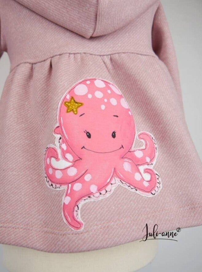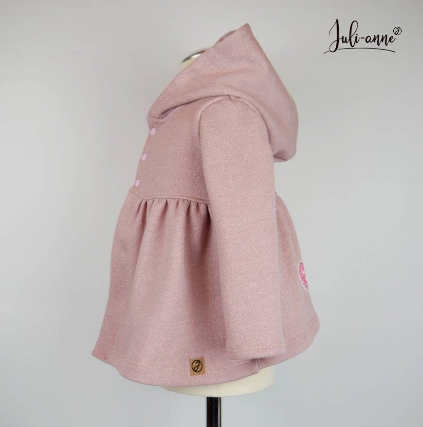 Dies ist der mit Abstand der beliebteste Schnitt für Mädchen.Jacken. Jumi ist ein süßes Jäckchen, dass ich hier aus einem tollen Kuschelsweat mit dezenten Glitzerpartikelnanfertige. Die Jacke ist einlagig, nur die Kapuze ist gefüttert. Sie eignet sich damit gut für die Übergangszeit und kühle Sommertage.