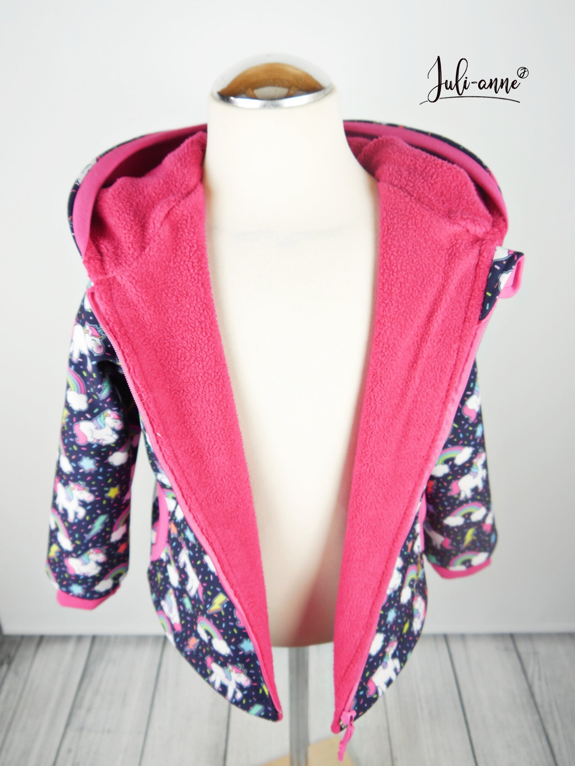 Ihr könnt auswählen, wie dick eure Jacke sein soll. Wenn ich sie mit einem Jersey füttere, dann ist sie für kalte Sommertage und die Übergangszeit geeignet. Mit einem Baumwollfleece wird sie wärmer und während der Übergangszeit - Winter tragbar.
