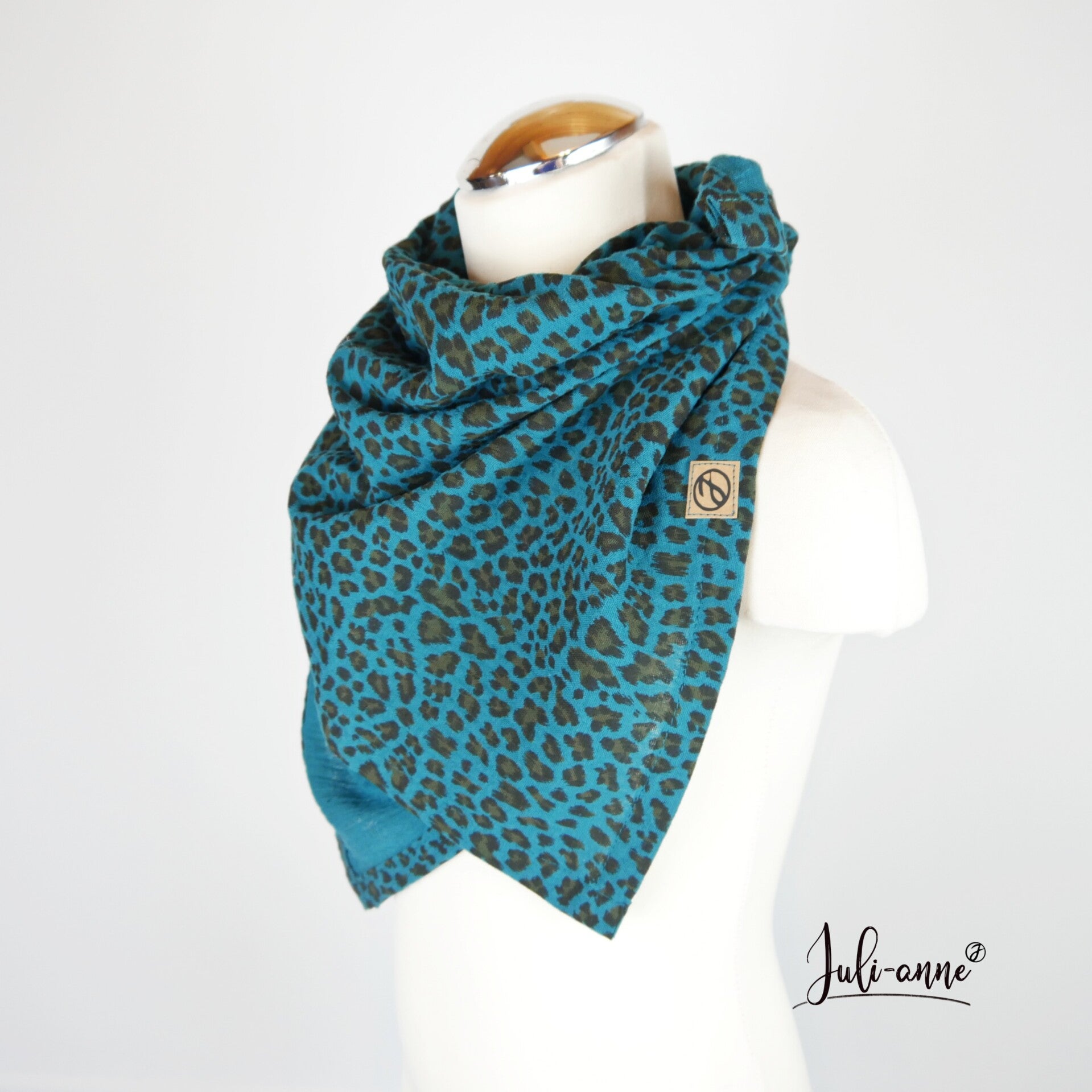 4 - 10 Jahre Musselin Halstuch Leoparden Muster Petrol