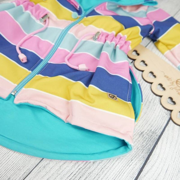 Hier bekommt ihr eine tolle Jacke für den Übergang oder Winter. Das Futter könnt ihr selbst wählen und entscheidet damit, für welche Jahreszeit eure Block-Streifen Jacke werden soll.