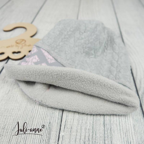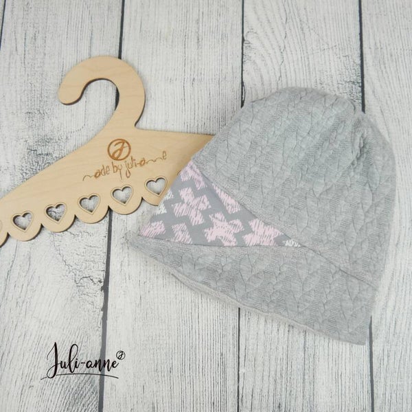 Süße Beanie aus Zopfstrick mit einer coolen Teilung.