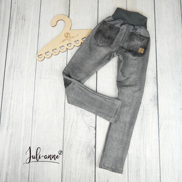 Biesen-Leggings Jeanslook BIO Sommersweat Dunkelgrau