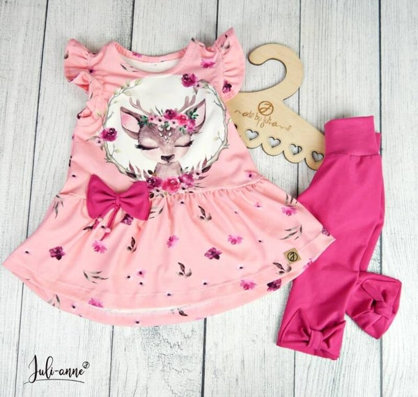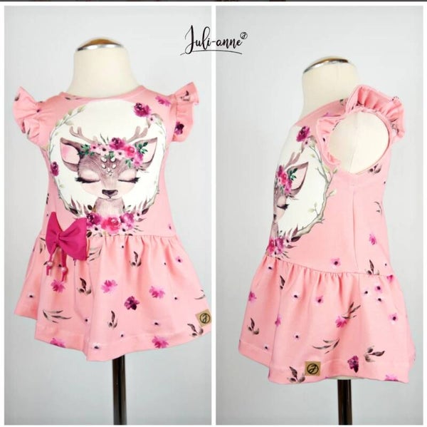#Mädchen #tunika #reh #Blumen #apricot #schleife #perlen #rosie