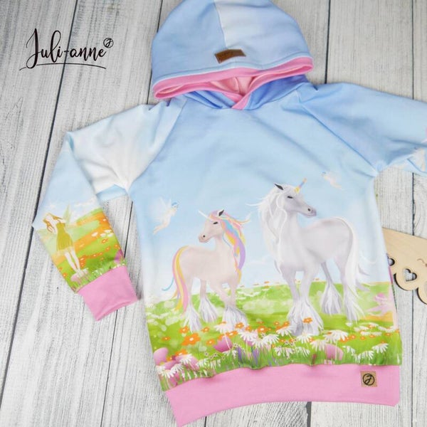 #pullover #kapuze #wunschgröße #unicorn #mädchen #rosa #petrol #verträumt