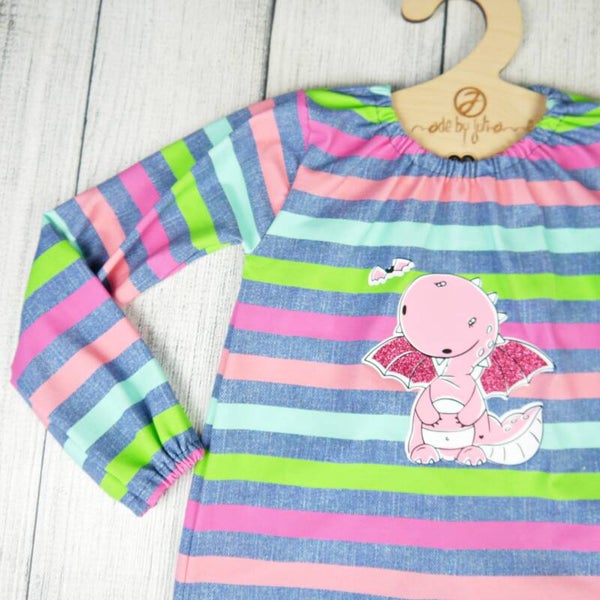 Shirt Ella - Blockstreifen & Glitzer Drache Pink