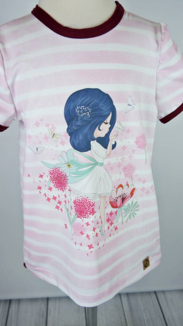 #Mädchen #Shirt #Vokuhila #streifen #Blumen #flower #bordeaux #weinrot