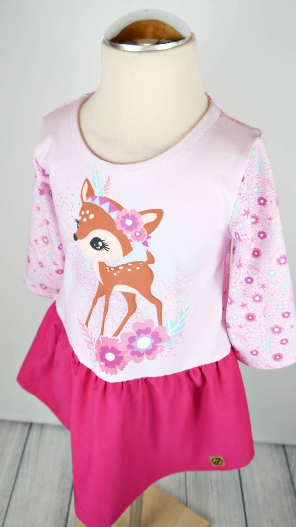 Long-Bluse / Kleid Ganzjahresliebling Blumen Reh