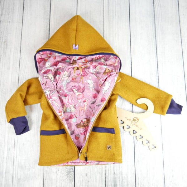Die Jacke ist in den Größen 74 bis 164 erhältlich und wird individuell nach deinen Wünschen angefertigt. Du hast besondere Vorstellungen? Schreib mir gerne – ich freue mich darauf, deine Wunschjacke zu nähen!