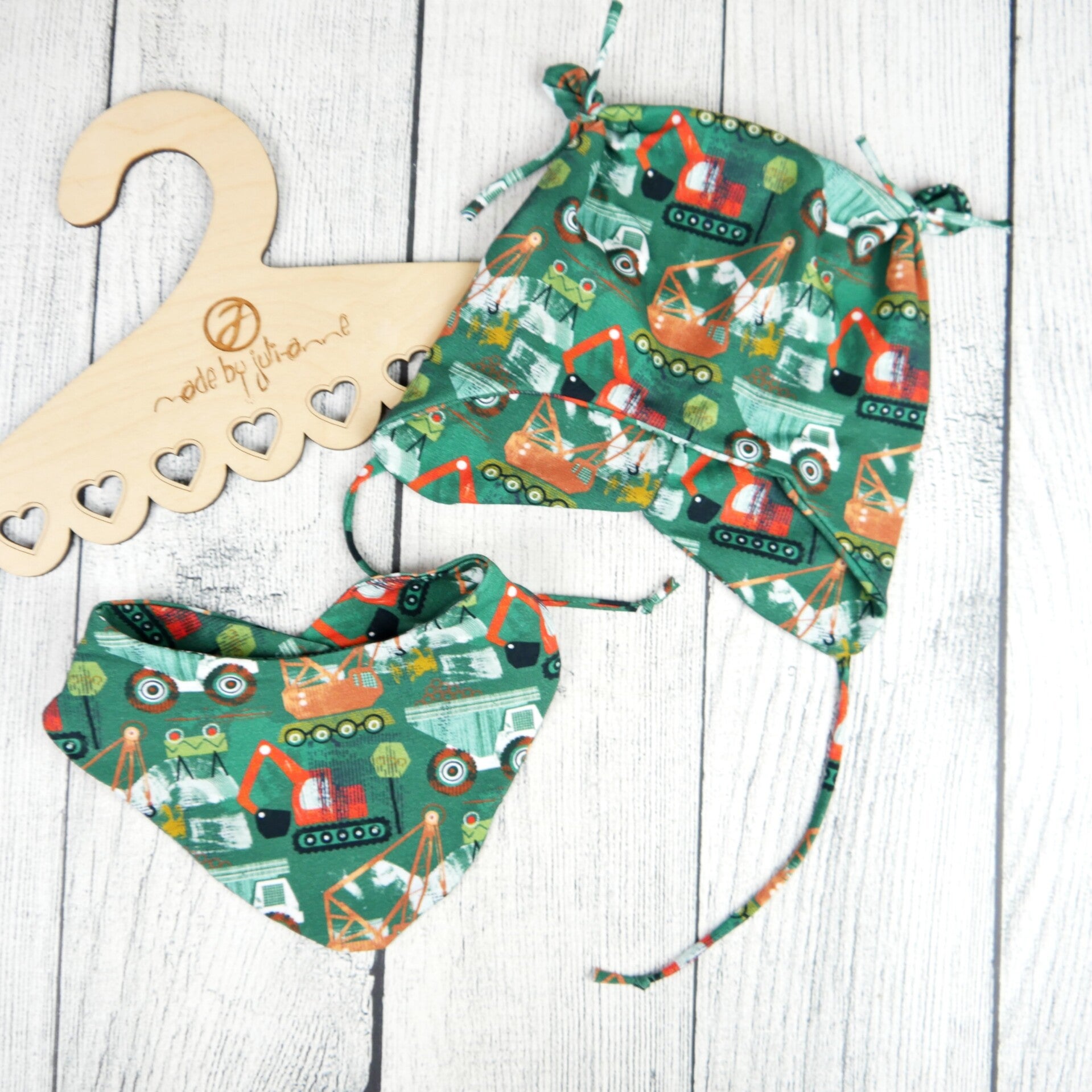 Set: Öhrchen Mütze & Halstuch Baufharzeuge Grün