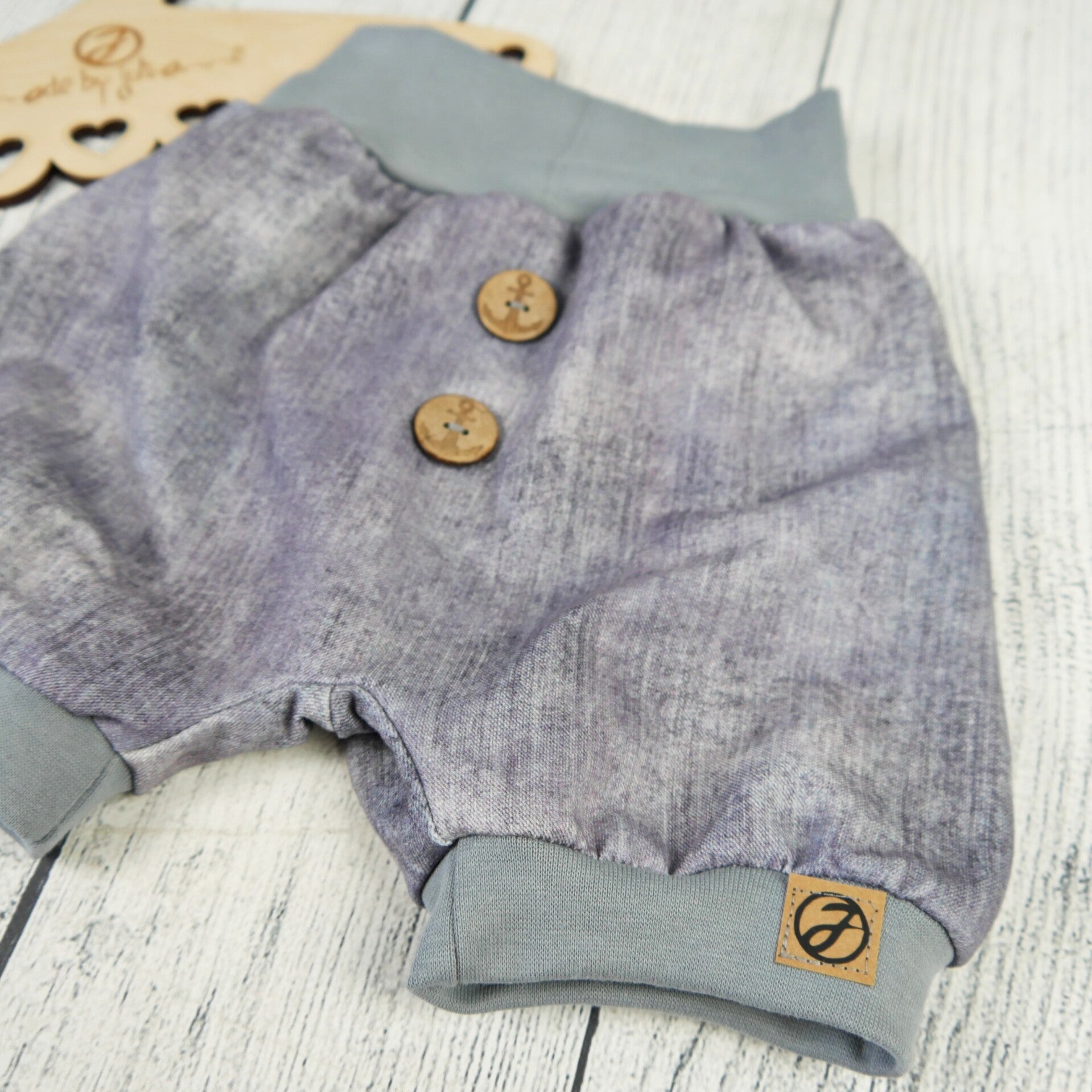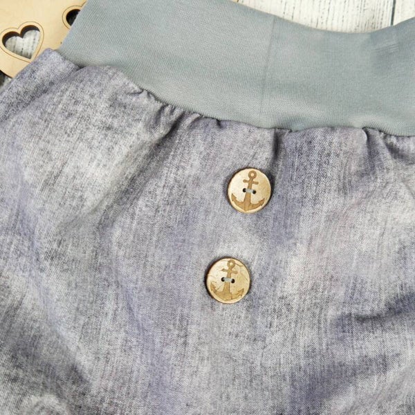 kurze Pumphose Jersey Jeanslook Hellgrau & Knöpfe