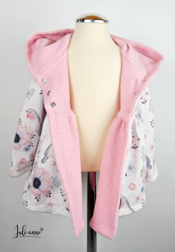 Jumi ist ein süßes Jäckchen, dass ich hier aus einem hochwertigen Pferde - Jersey fertige. Sie ist Innen komplett mit einem kuscheligen Baumwollfleece gefüttert.