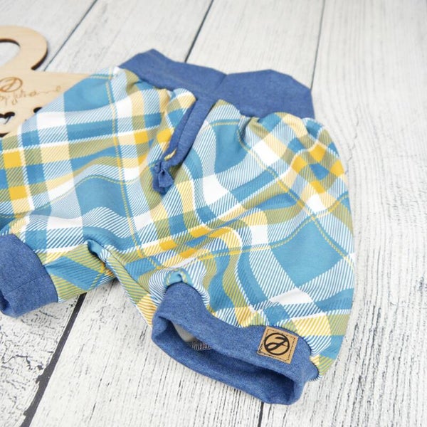 110 / 116 kurze Pumphose Schottenkaro Blau - Gelb