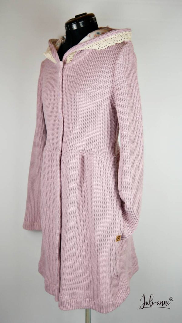 Jumi ist ein verspielter Mantel, den ich hier aus einem tollen Baumwoll-Grobstrick fertige.