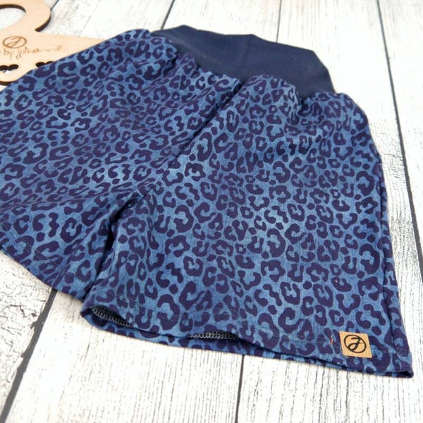 140 Sommershorts Kurz Jeanslook Leo Muster Dunkelblau