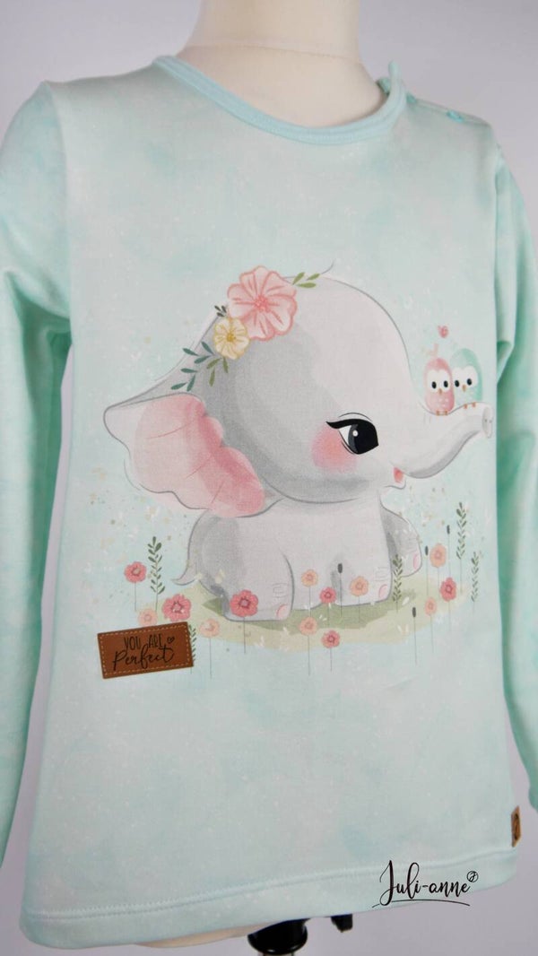 #Mädchen #Shirt #Vokuhila #elefant #vogel #streifen #langarm #verspielt