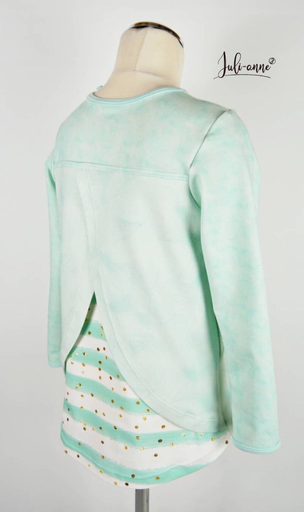 In den Größen 80 - 122 Nähe ich in der Schulternaht eine Knopfleiste ein, damit das Anziehen besonders leicht ist. Falls du das nicht wünschst oder länger brauchst, notiere es gern bei der Bestellung.