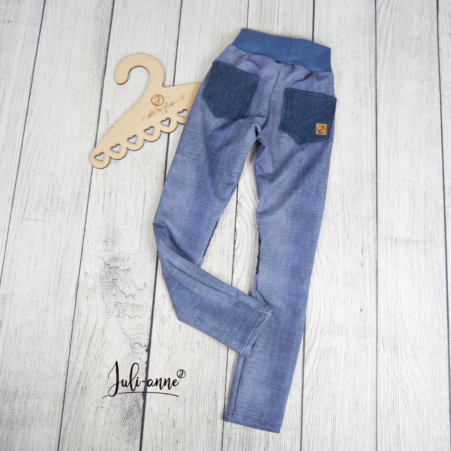 Biesen-Leggings Jeanslook BIO Sommersweat Blau