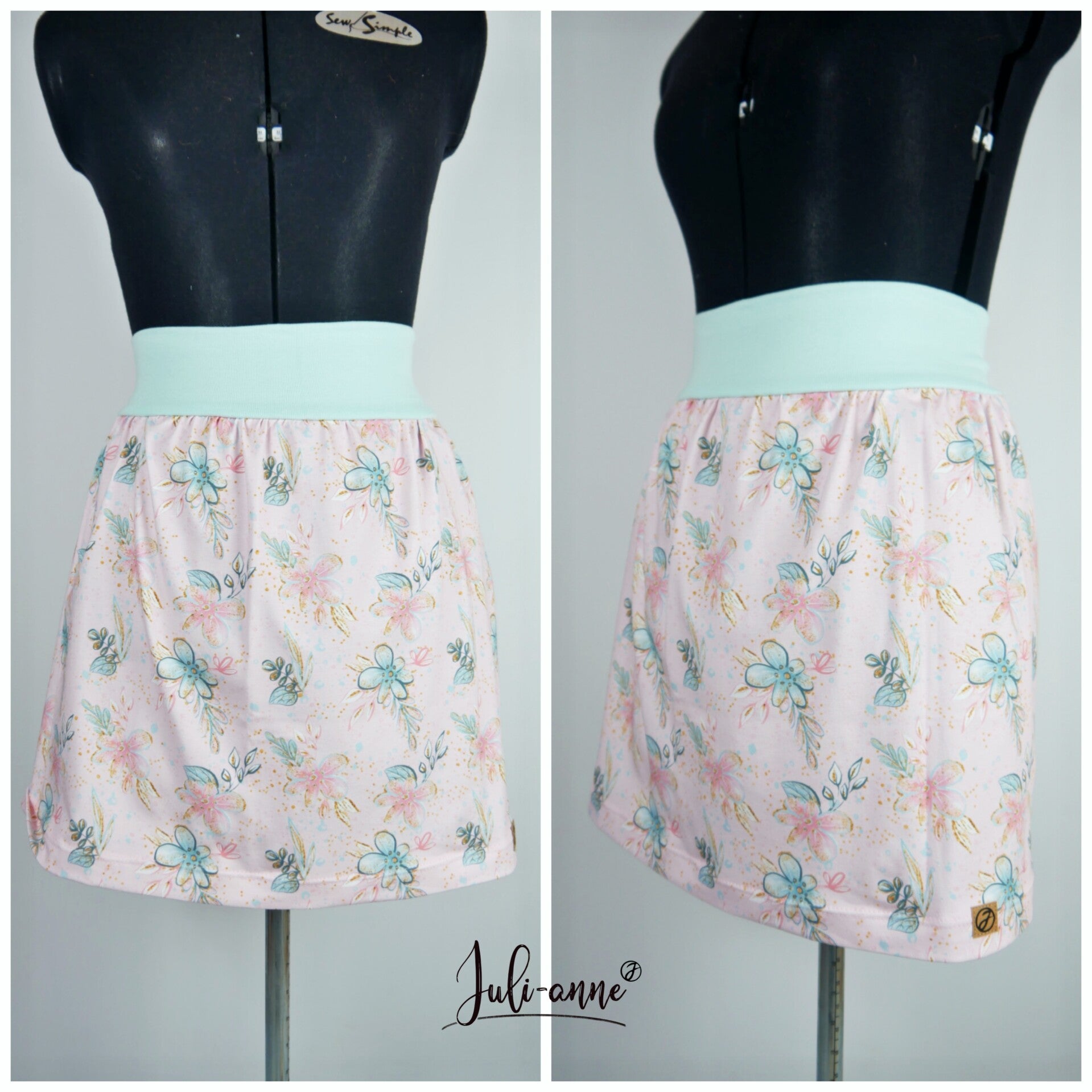 Dies ist ein schlichter geraffter Rock, den ich aus Jersey fertige.