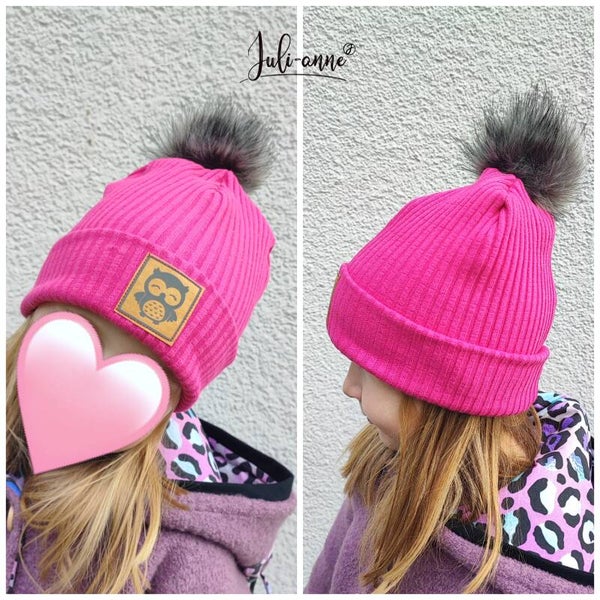 Coole Hipster Beanie, die 2lagig aus Grobstrick-Bündchen gefertigt ist.