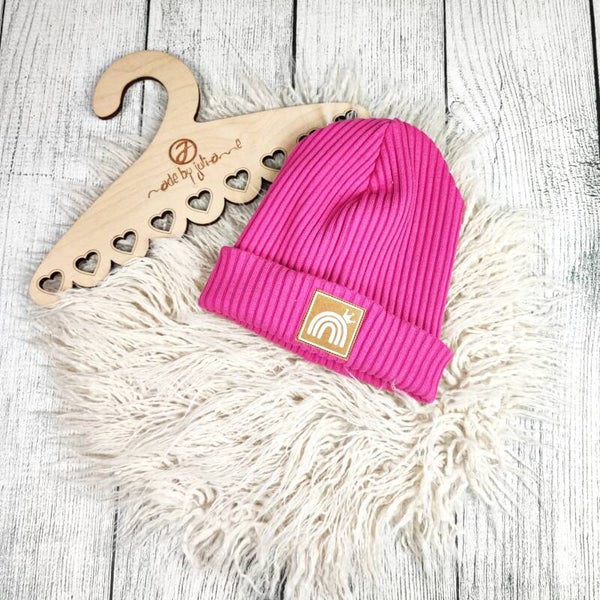 49 - 53 Hipster Beanie Grobstrick Pink - Regenbogen