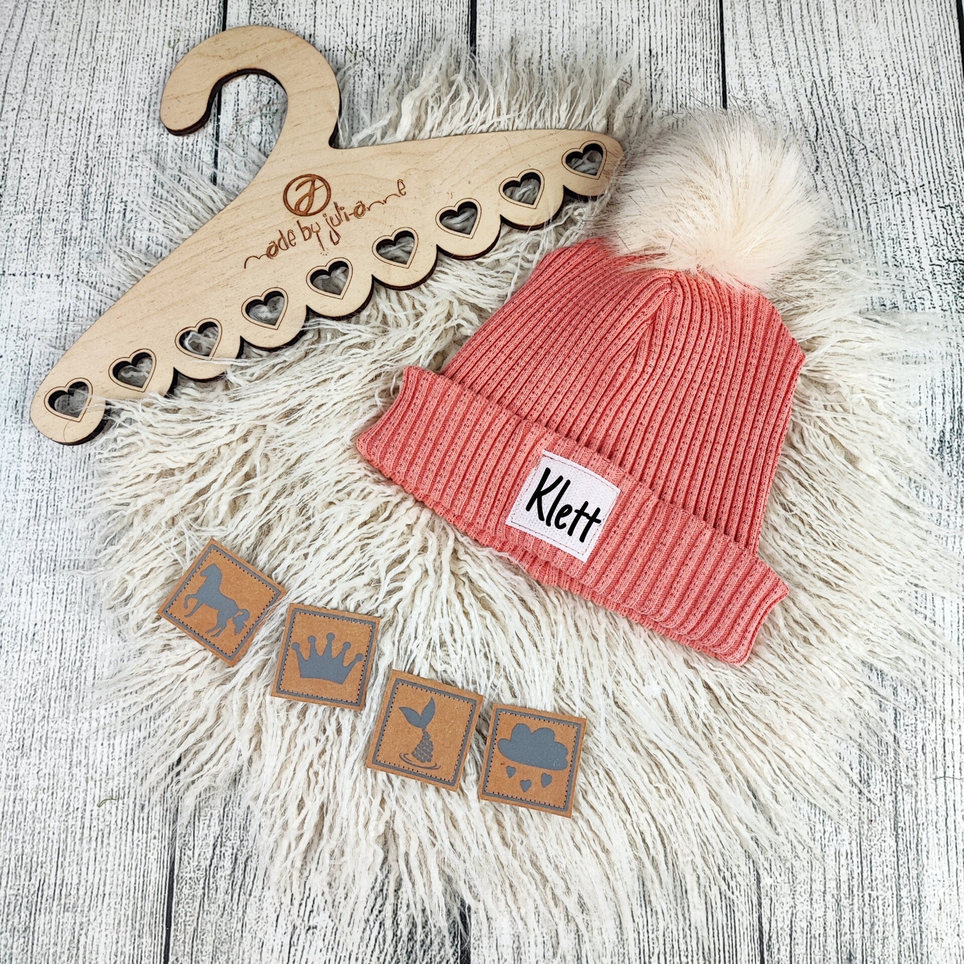 Du kannst bei dieser Beanie 1 Klettlabel Motiv auswählen. Die Motivauswahl findest du bei den weiteren Bildern.