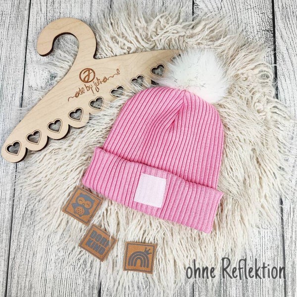 Du kannst die Farbe der Bommel wählen oder die Mütze ohne Bommel bestellen.
