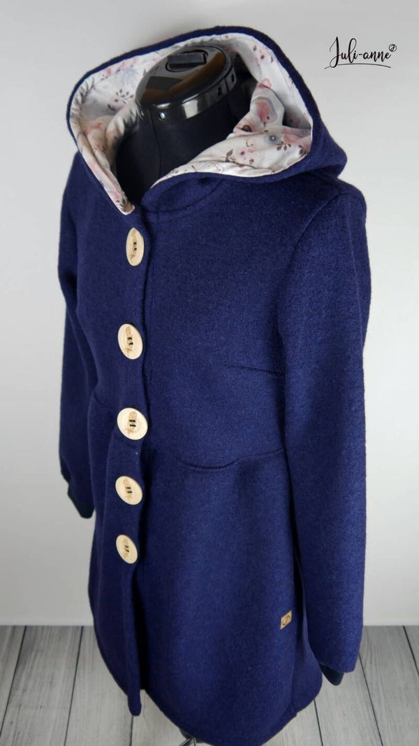 Jumi ist ein verspielter Mantel, den ich aus Standard-Walk fertige. Dieser hochwertige Wollwalk mit 410 g/m² ist ideal für die Übergangszeit – leicht, wärmend und angenehm zu tragen. Falls du einen besonders dicken und warmen Mantel für kalte Wintertage suchst, empfehle ich dir meinen Bio-Softwalk, den du HIER entdecken kannst.