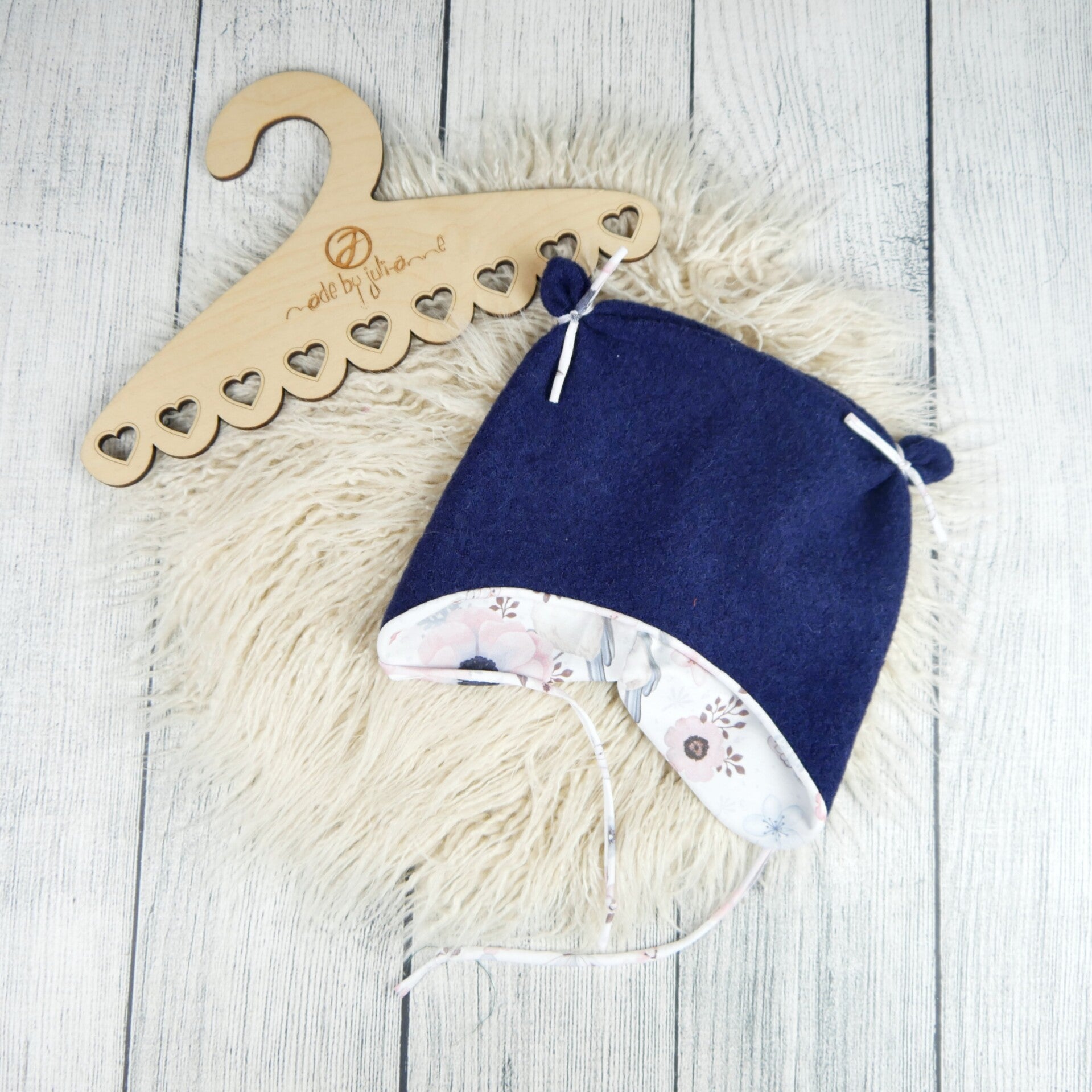 Süße Öhrchenmütze bestehend aus Walk und Jersey.