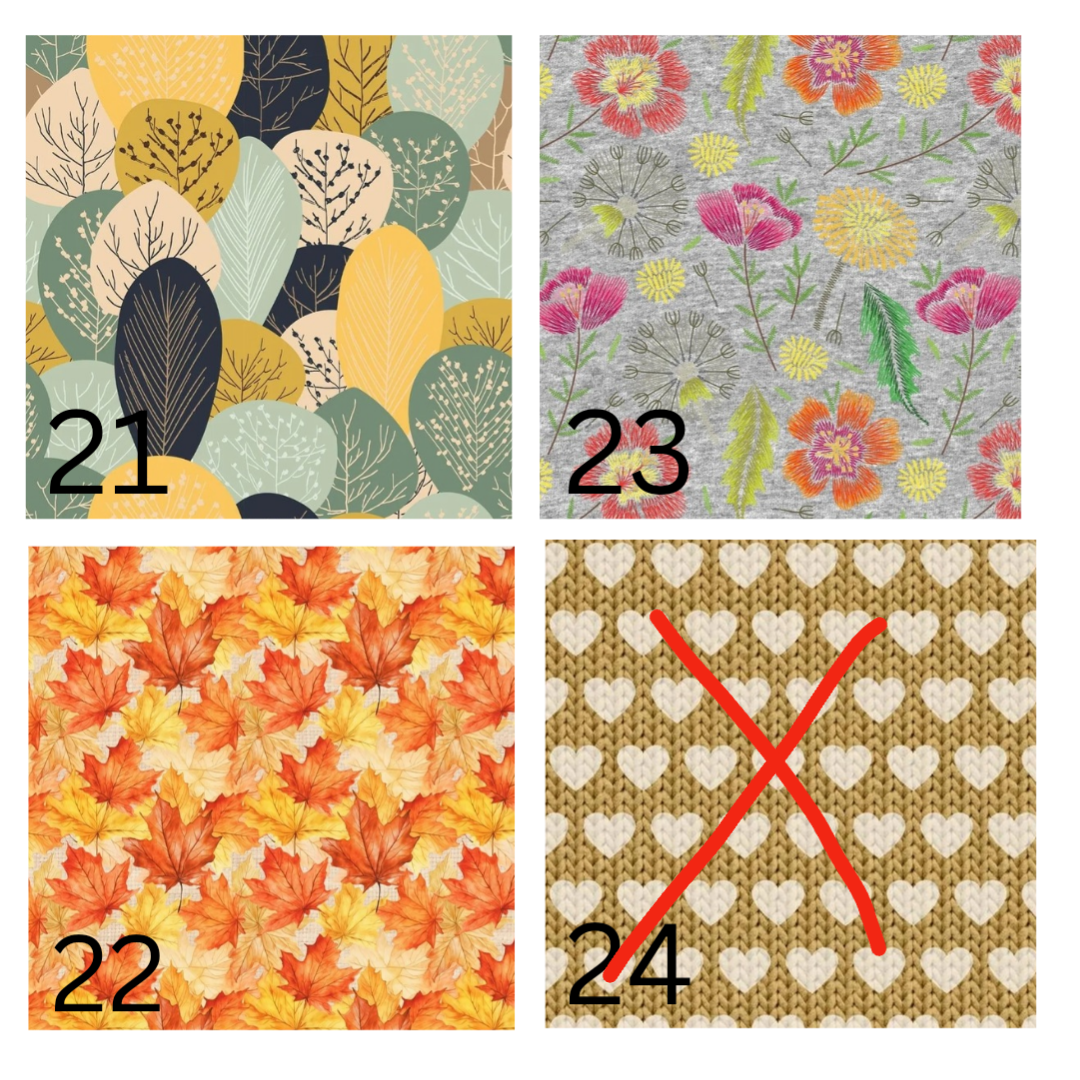 - In den weiteren Bildern stelle ich dir 24 verschiedene Stoffe für das Kapuzenfutter zur Auswahl.