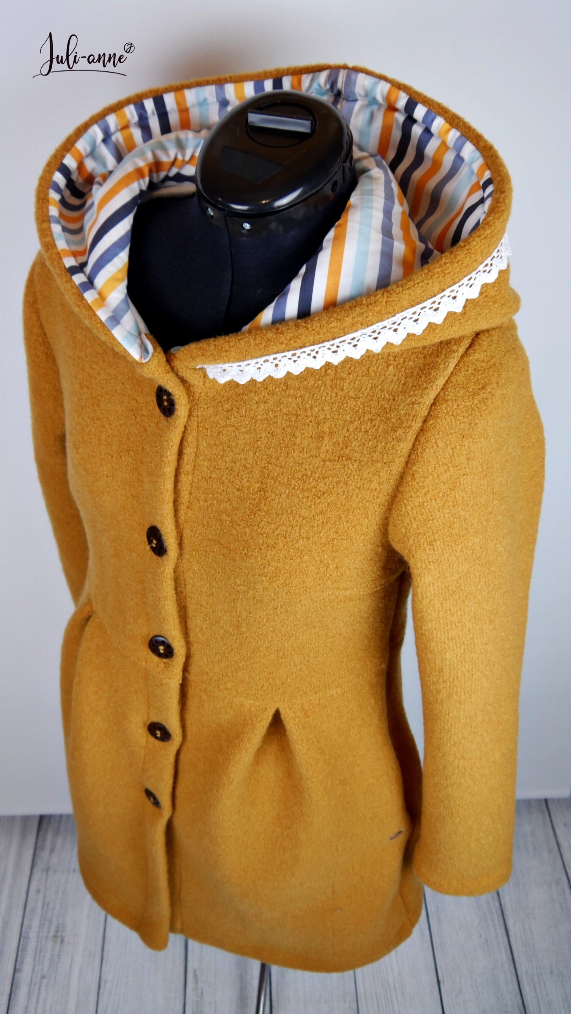 Jumi ist ein verspielter Mantel, den ich aus Bio-Softwalk fertige.