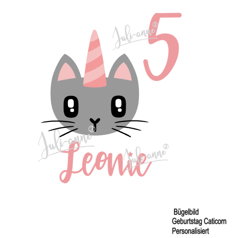 Bügelbild "Geburtstag Caticorn Grau" PERSONALISIERT