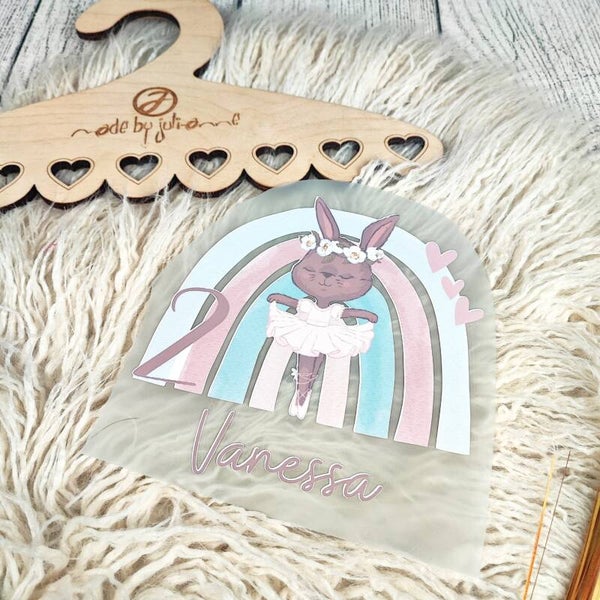 Bügelbild Geburtstag Regenbogen Ballerina Hase " PERSONALISIERT