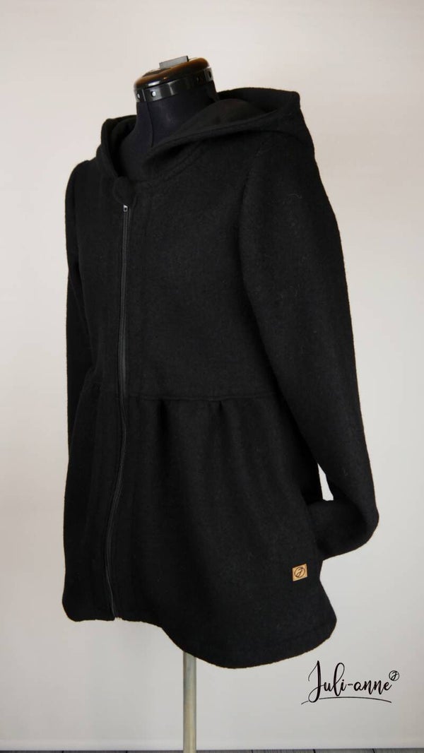Jumi ist ein verspielter Mantel, den ich aus Standard-Walk fertige. Dieser hochwertige Wollwalk mit 410 g/m² ist ideal für die Übergangszeit – leicht, wärmend und angenehm zu tragen. Falls du einen besonders dicken und warmen Mantel für kalte Wintertage suchst, empfehle ich dir meinen Bio-Softwalk, den du HIER entdecken kannst.