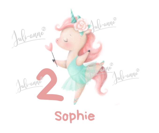 Bügelbild Geburtstag Ballerina Einhorn " PERSONALISIERT