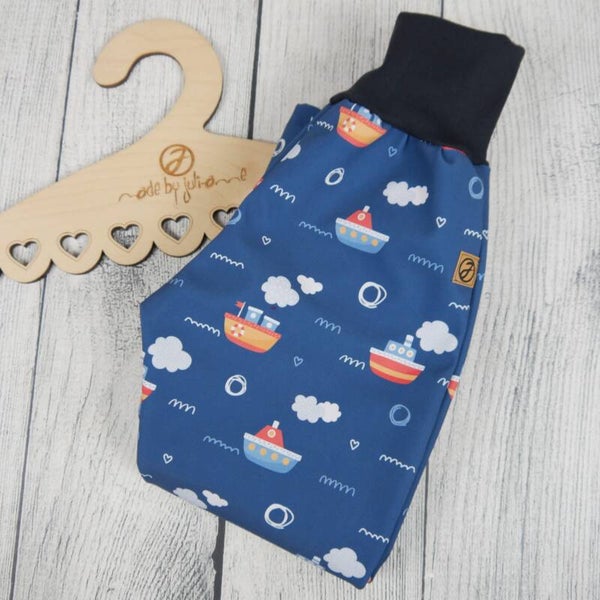 Außerdem hat die Hose einen praktischen Anhänger eingenäht, damit sie an den Kleiderhaken in der Kita oder zu Hause gehangen werden kann.