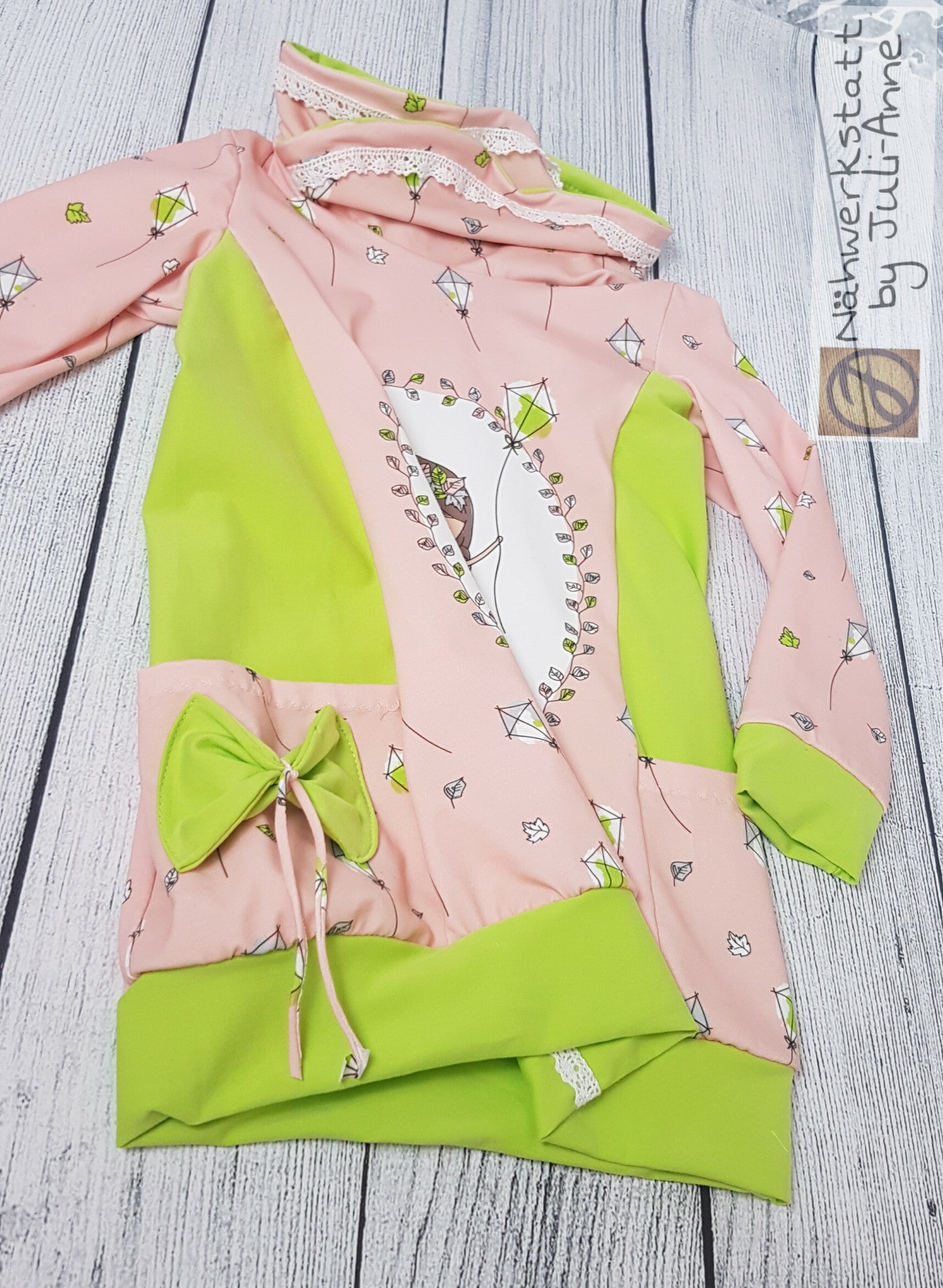 Das Hoodiekleid gibt es nicht nur mit einer Kuschel-Kapuze sondern auch mit einem Wickelkragen ;)